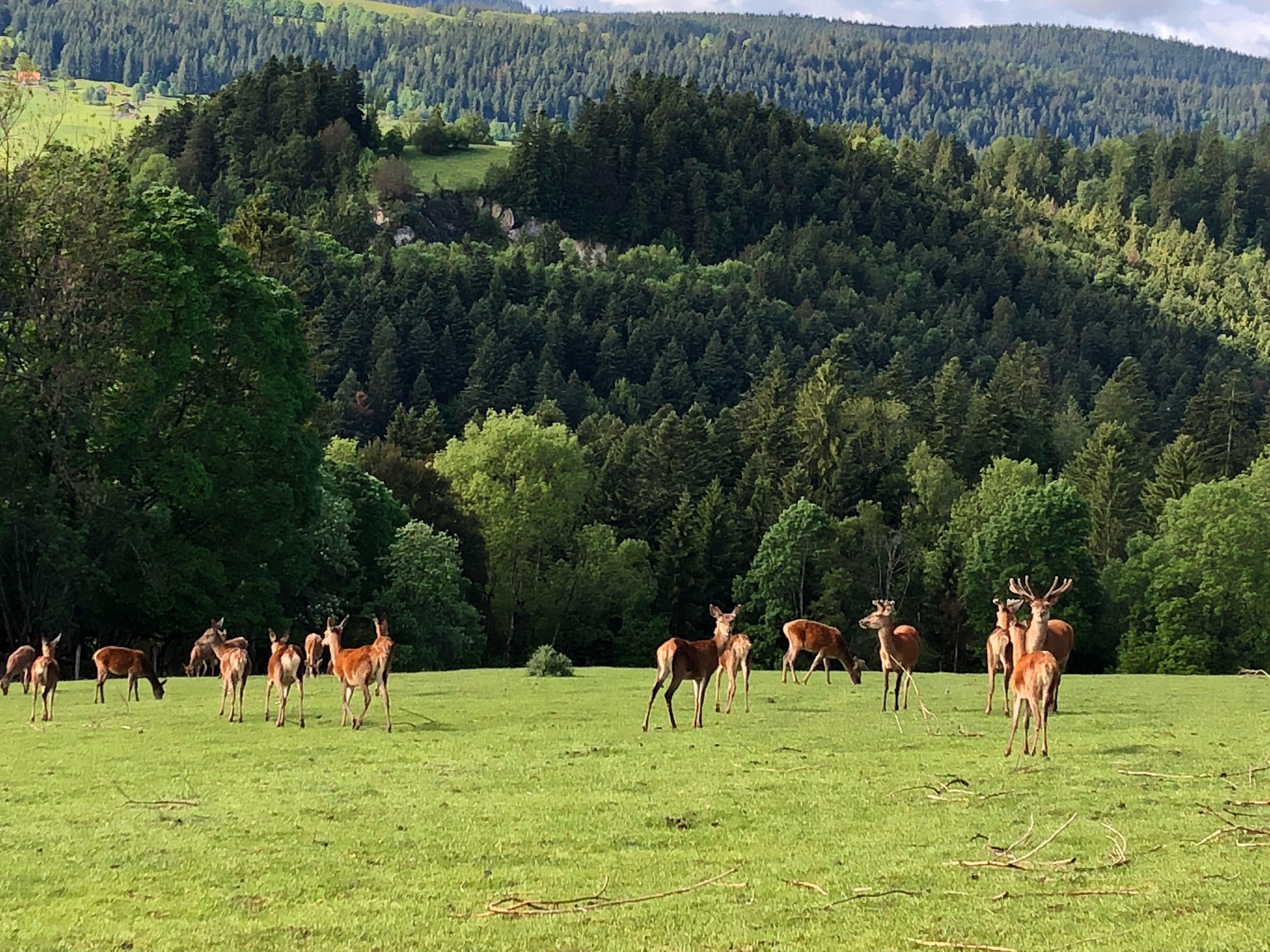 Nos cerfs sont élevés sur 11 ha sur les pâturages des Endroits entre le Locle et les Brenets, en direction de la ferme Modèle, dans le canton de Neuchâtel. Ils vivent toute l'année en plein air.